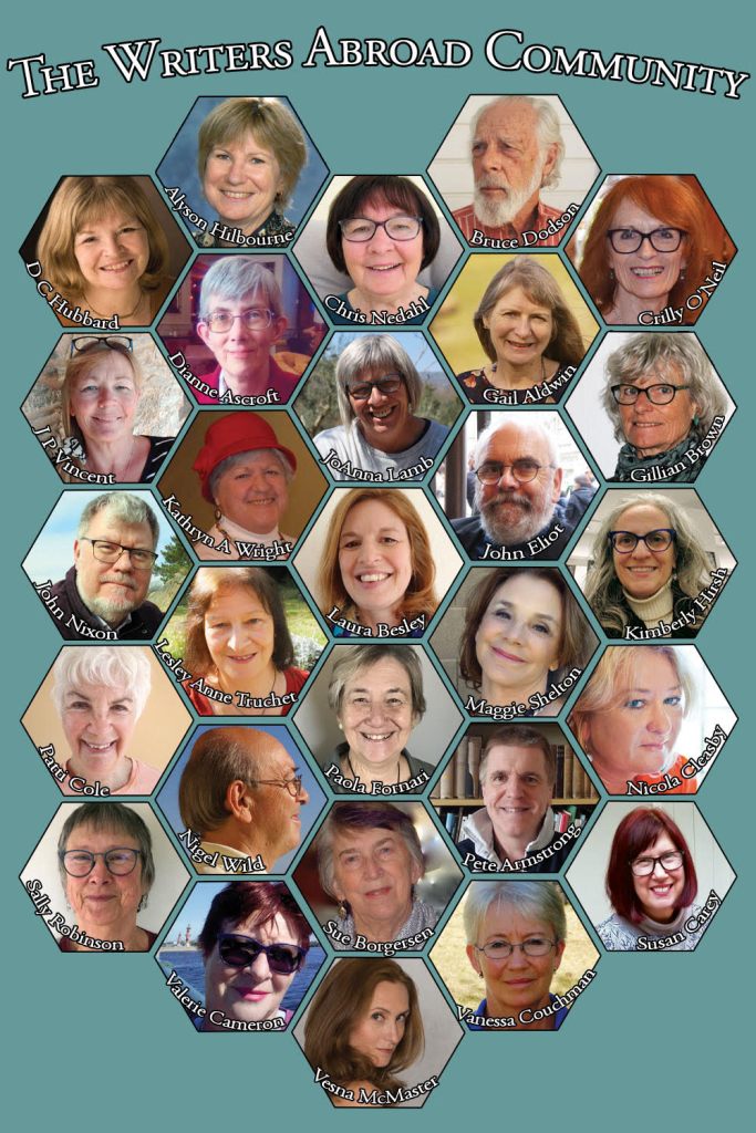 Writers Abroad now approaches its tenth anniversary and to celebrate a decade of online critiquing, feedback, networking and shared motivation, we’re releasing a new anthology Far Flung. This showcases writing by past and present members of the group whose portraits appear on the collage below.