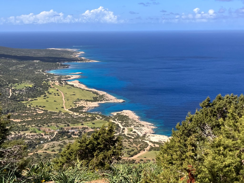 Around the major tourist towns are long promenades which make for good walking. We enjoyed several amazing sunsets during walks to the furthest points along the coast around Pafos. After an underwhelming visit to The Baths of Aphrodite outside Polis, we joined a trail which took us onto the Akamas Peninsula from where we had the fabulous (middle) view. We diverted from our itinerary to reach the Troodos mountains on the only sunny day forecast all holiday. Fortunately the weather stayed with us for a trek around Mount Olympus following the Artemis Trail.