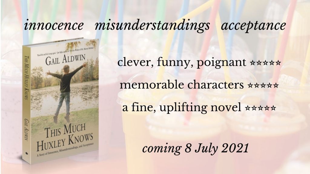 This book surprised me. It’s an innovative, delightful, and insightful story told in first person by a child. The narrator, Huxley, is an innocent, playful, provocative seven-year-old, an “only lonely,” (no siblings), who is achingly searching for a true friend and pushing those around him to be caring and reasonable. What is so extraordinary is that Gail Aldwin beautifully transports the reader inside Huxley’s head and heart.