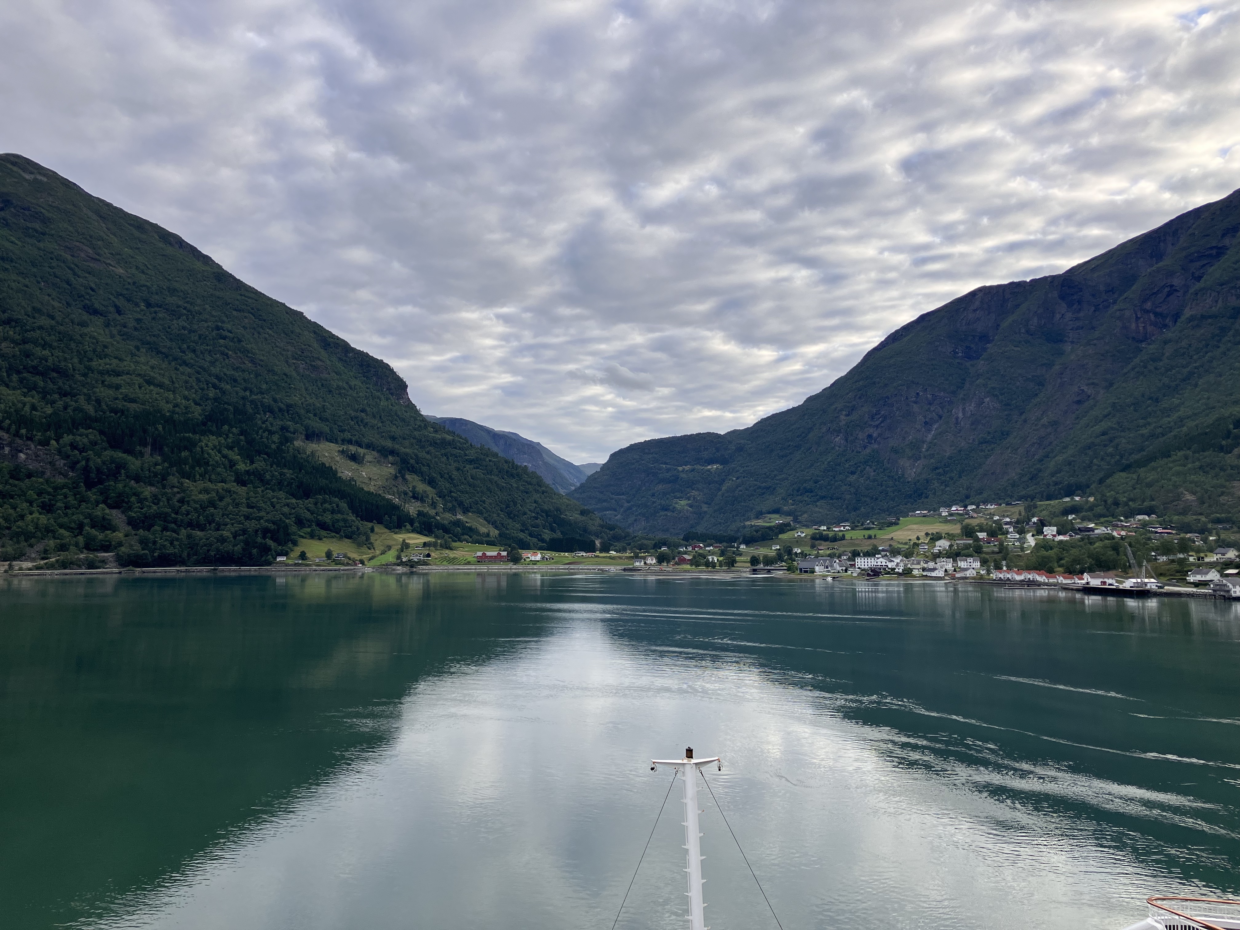 We docked at eight different places. Usually we could walk straight off the ship but on one occasion had to catch a tender. Most of the towns boasted churches, museums and riverside walks. I can’t say these brief visits really provided a sense of place but the beauty of the fjords in which they were nestled was undeniable.