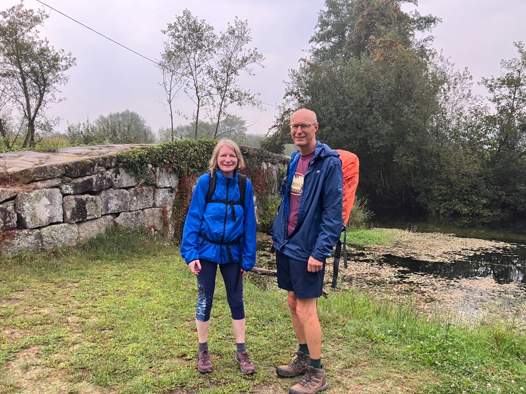 Following a few days of dry weather, the rain started. We donned our raincoats and made the best of things, stopping for a photo beside this medieval bridge.
